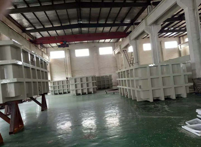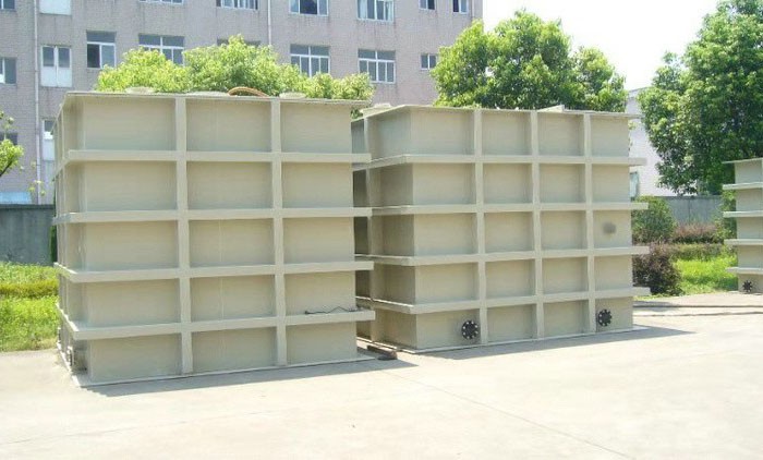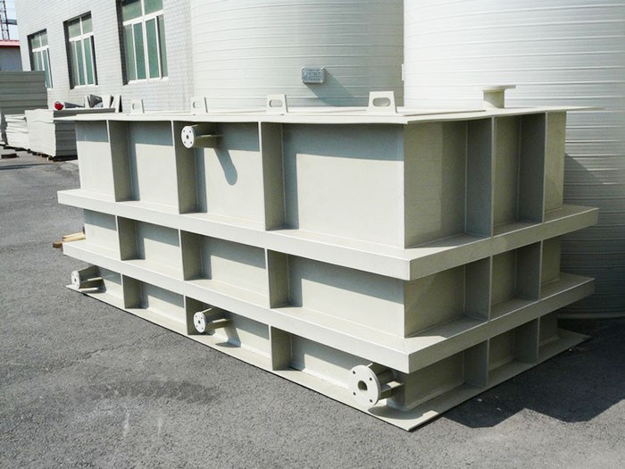 一種工業(yè)廢水降解槽,包括鼓泡池,所述鼓泡池內(nèi)設(shè)有隔板,所述隔板將所述鼓泡池分割為若干分布于同一直線上的水槽,所述水槽設(shè)有溢流口,相鄰的水槽中的溢流口沿垂直于溢流槽分布方向的方向錯開,溢流口部位距離水槽底面的高度為6~13厘米。水槽分布于同一直線且溢流口彼此錯開,能夠優(yōu)選防止廢水流過水槽時產(chǎn)生回流現(xiàn)象。水槽內(nèi)的水深只能為6~13厘米。更容易混合均勻,且不容易生產(chǎn)噴濺現(xiàn)象。