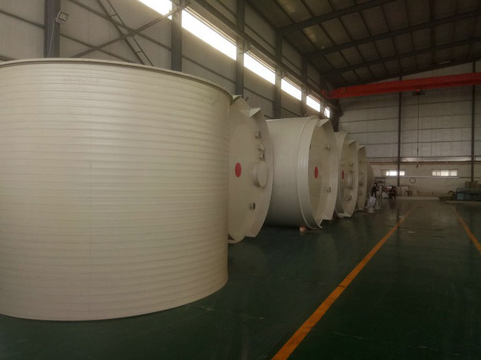 3、進(jìn)入PP反應(yīng)釜應(yīng)穿潔凈膠鞋入內(nèi)察看玻璃襯里是否完好,法蘭及接管部位緊固,以免因局部受力過大,導(dǎo)致搪玻璃表面的損壞。